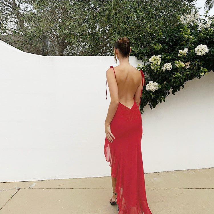 Look flirty and cute in this elegant Women's Maxi Gown with Midriff Cutout and Thigh Slit. This alluring dress features a low neckline and is supported by spaghetti straps.