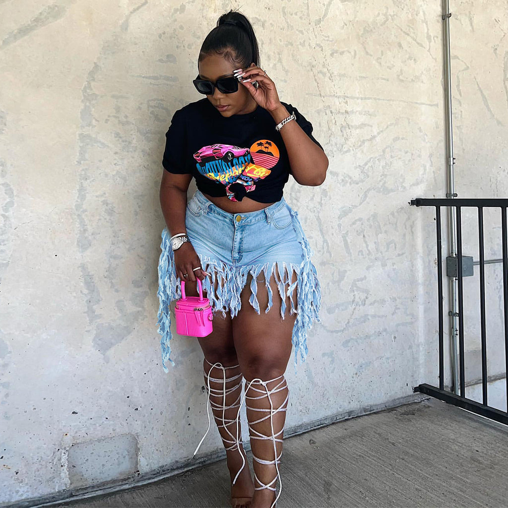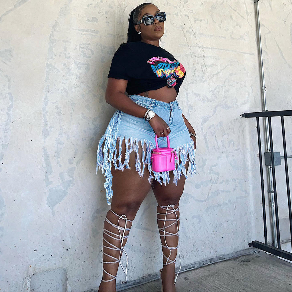 Take your style to the next level with the Women's Shredded Short-Shorts with High Waist. These shorts feature a high waist that flatters your figure and a shredded hem that gives it plenty of texture.