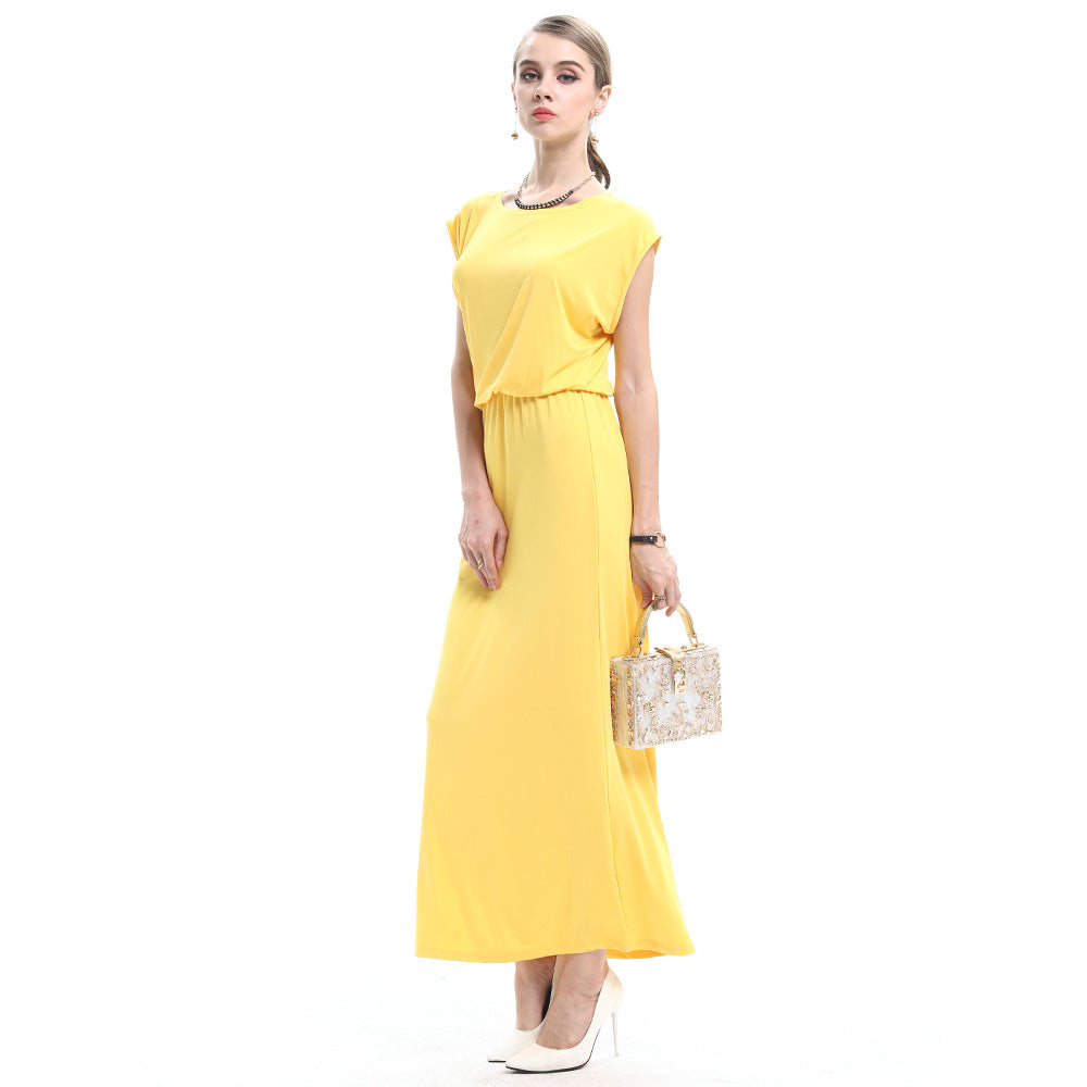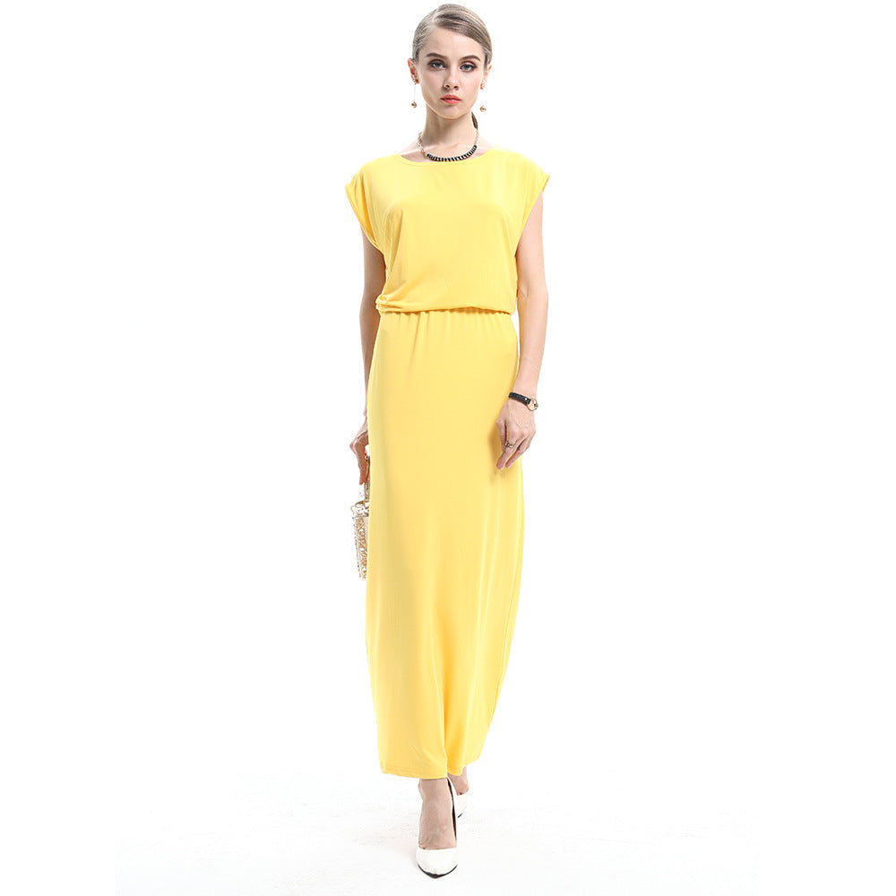 Get a classic look with the Women's Sleeveless Maxi Dress with Cinched Waist. This loose-fitting dress comes in gray, yellow or navy blue to suit your taste.