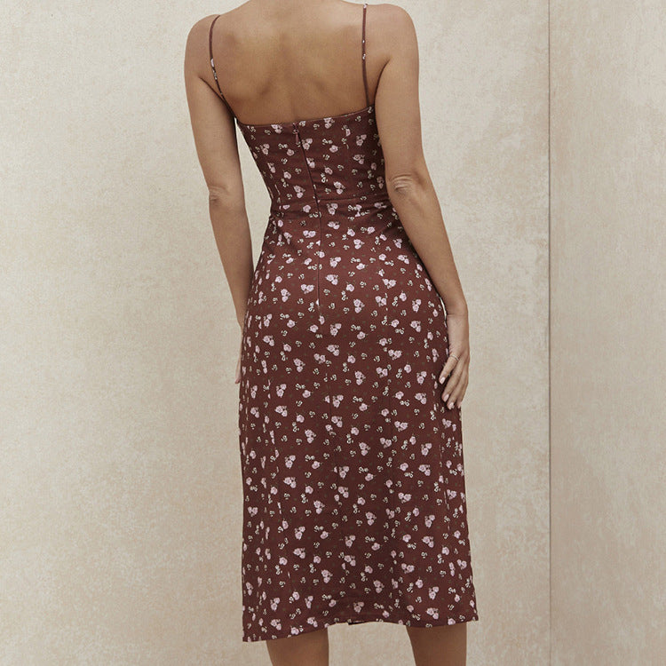 Vestido maxi de cinta de espaguete de glamour com fenda na coxa