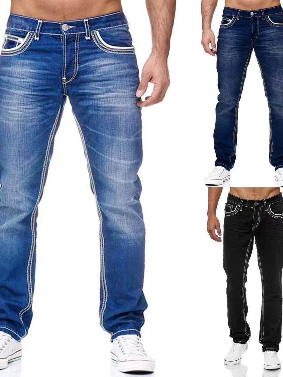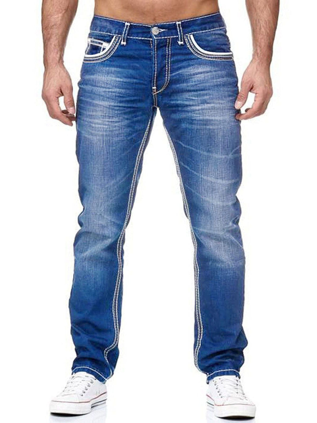 Clean up your daytime looks with the Men’s Straight Legged Skinny Jeans with Washed Effect. They come in your choice of black and light or dark denim shades.