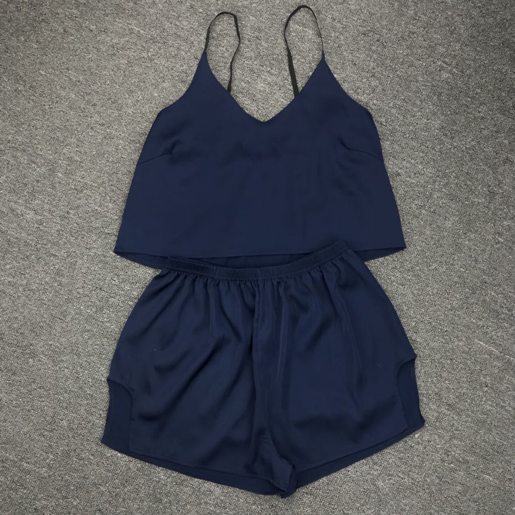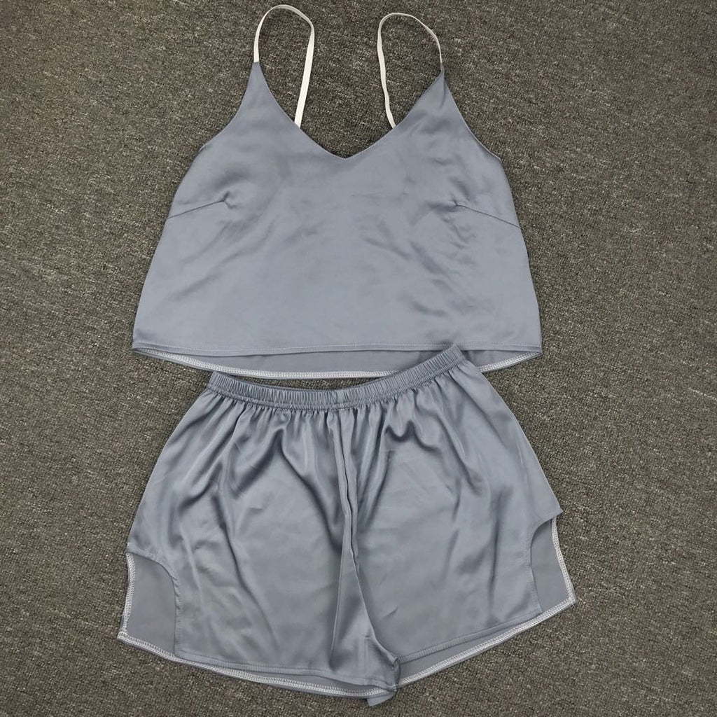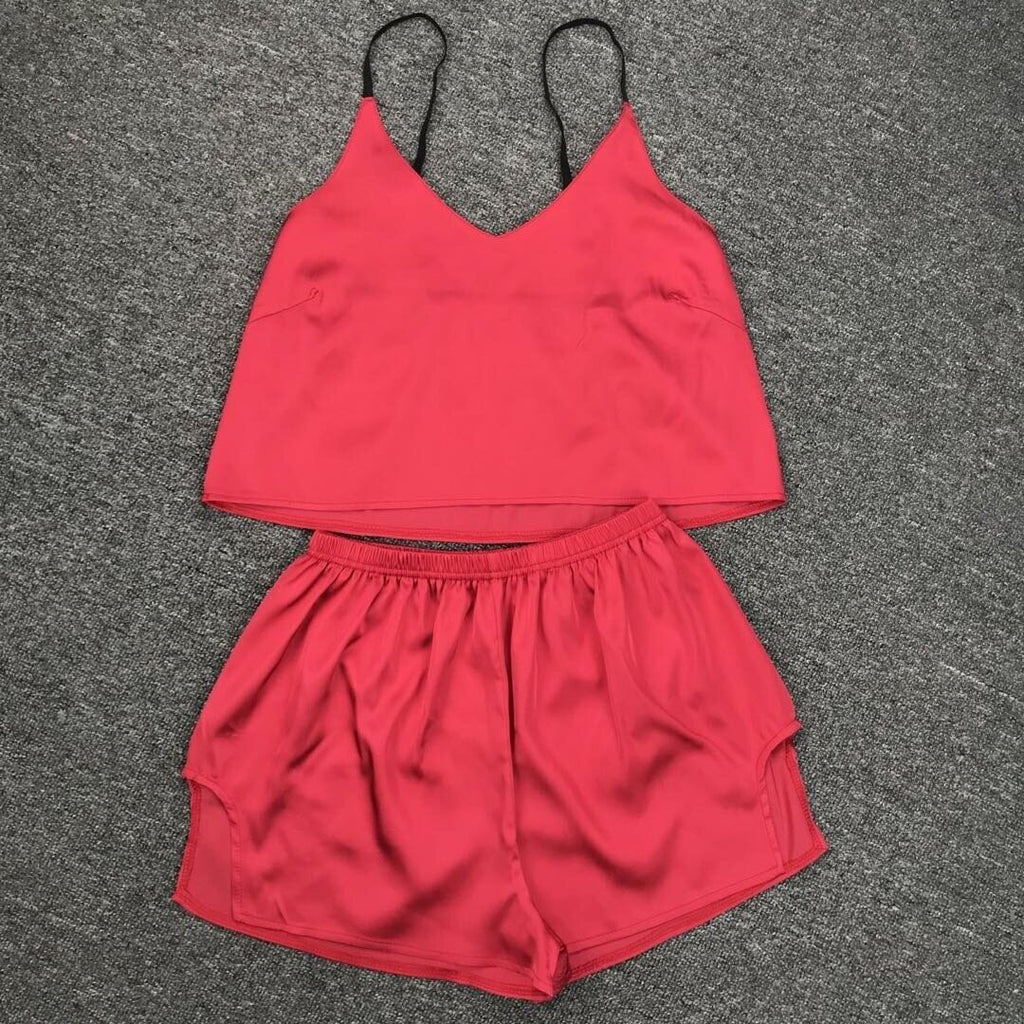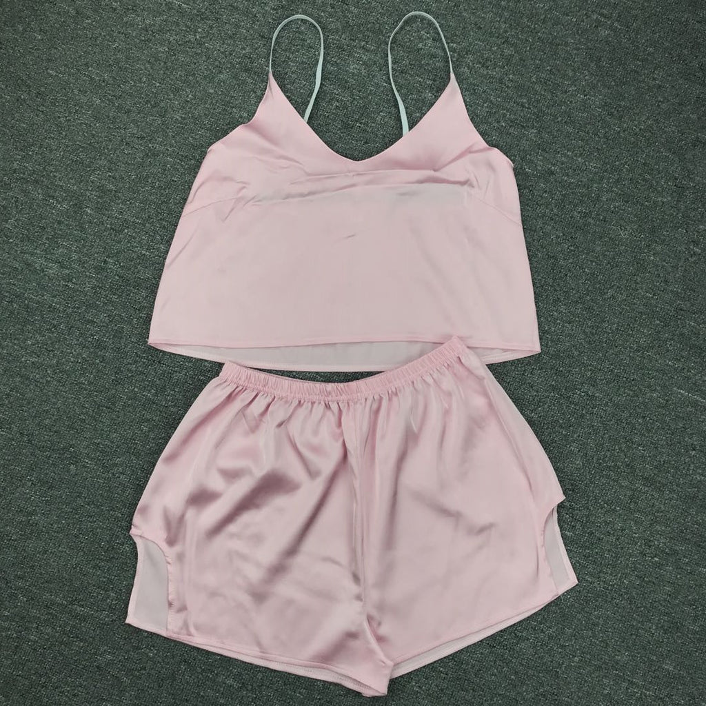 在女子的兩件背心和短褲套裝中放鬆身心時,要可愛又舒適。它具有意大利麵條帶和一條高腰部短褲,以便您的舒適感。