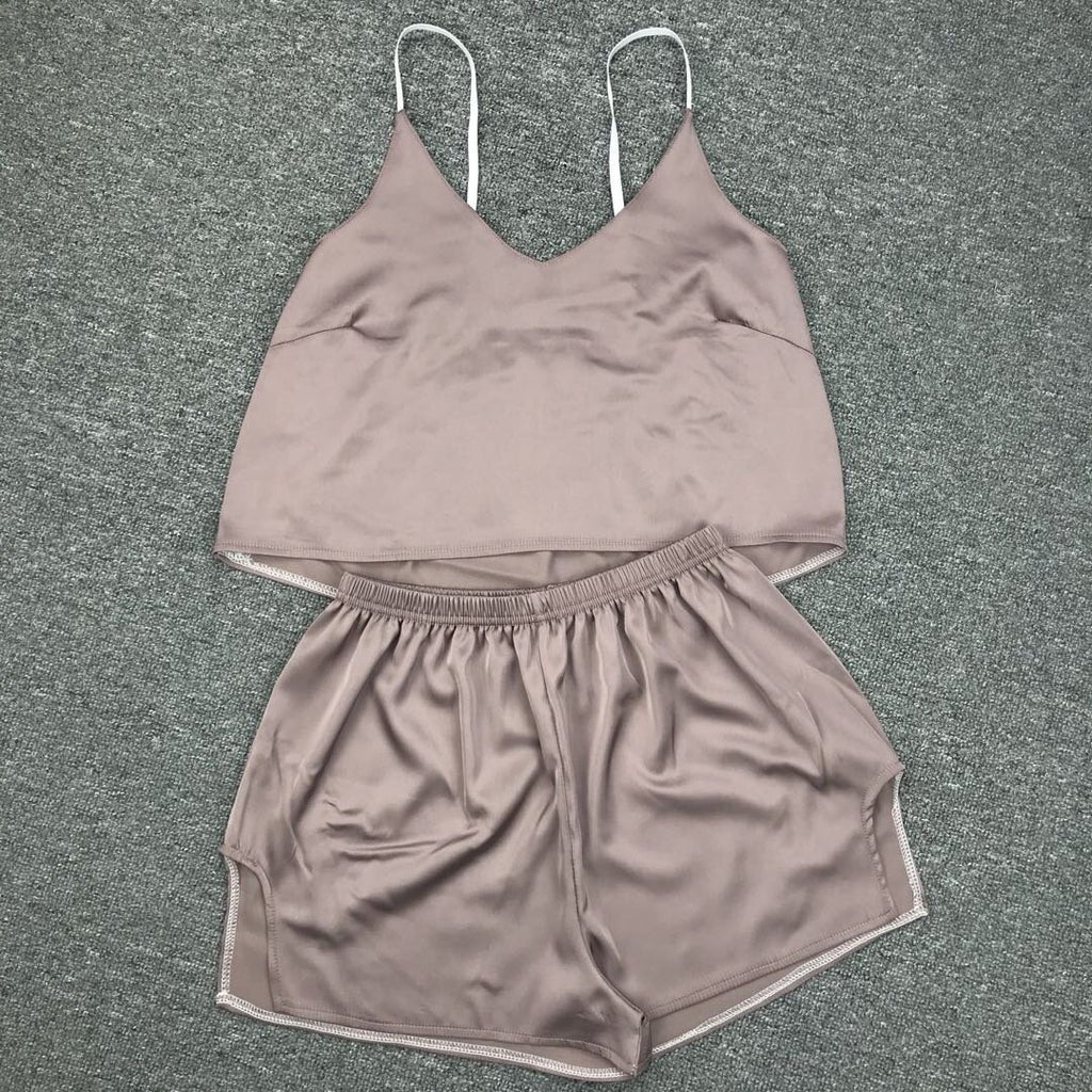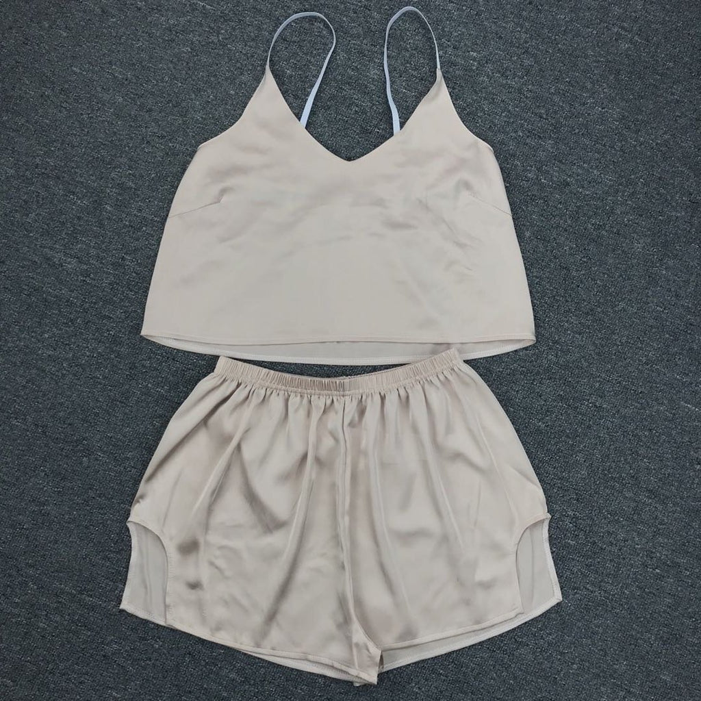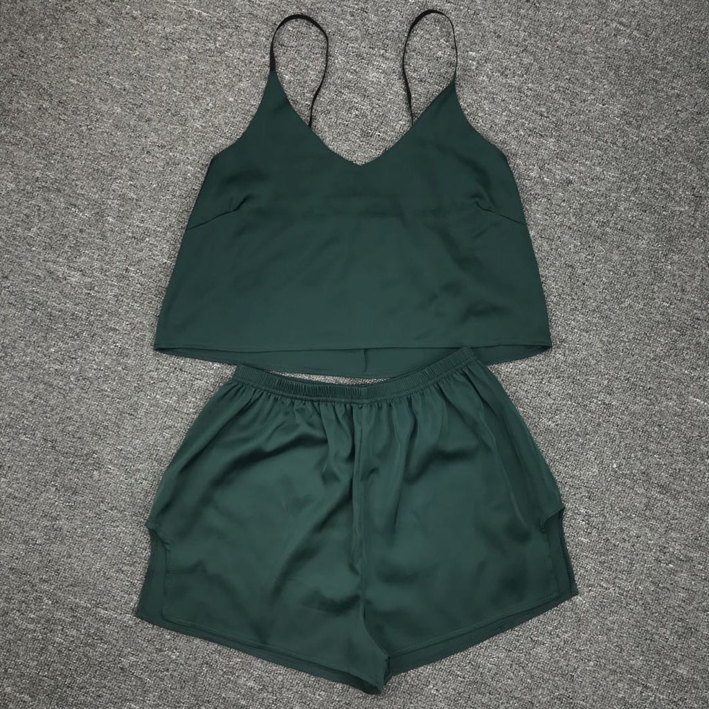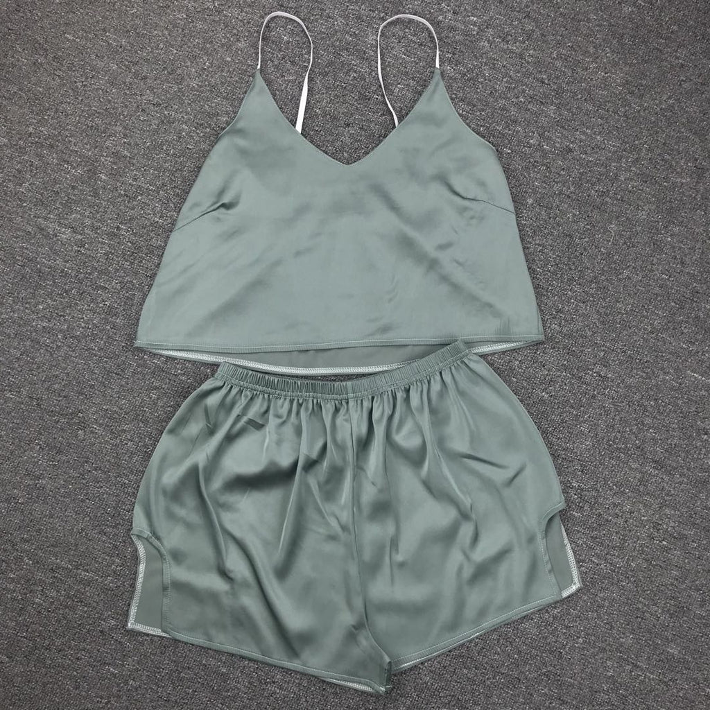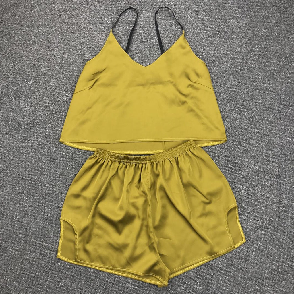 在女子的兩件背心和短褲套裝中放鬆身心時,要可愛又舒適。它具有意大利麵條帶和一條高腰部短褲,以便您的舒適感。