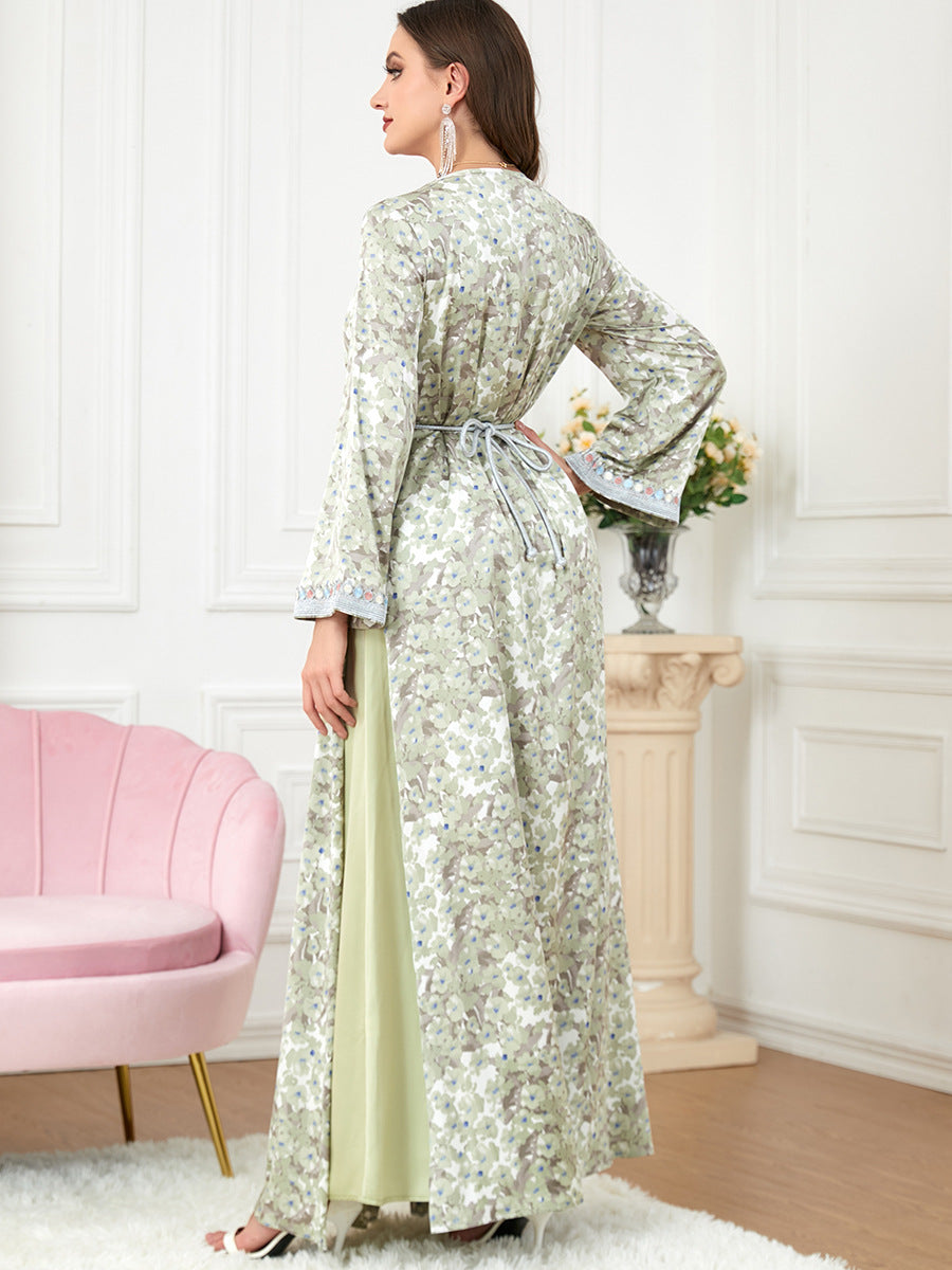Women's Long Sleeve Green and Pink Maxi Dress