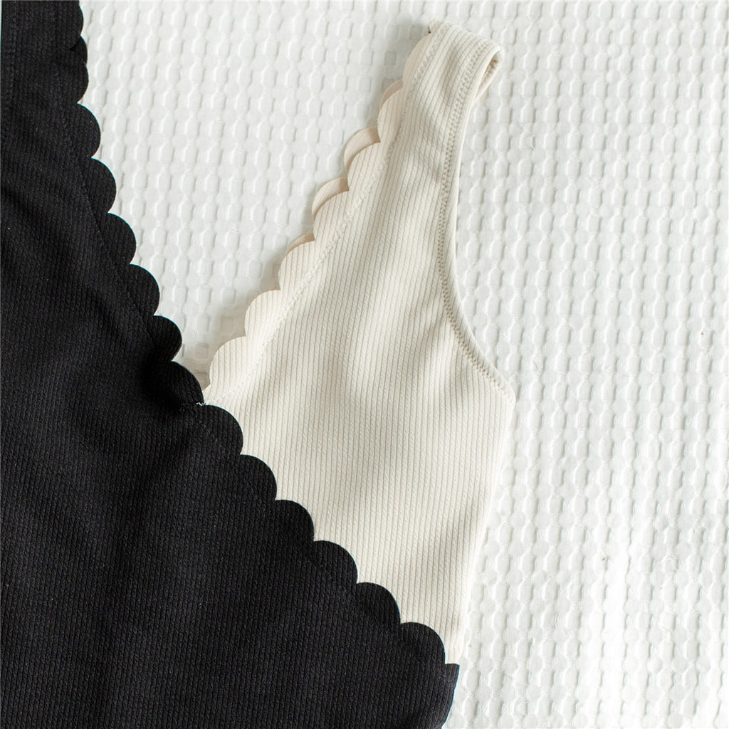 Women's One Piece Black and White Asymmetrical Knit Swimsuit